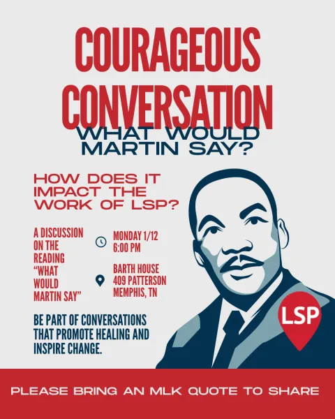 Please join us this Monday, January 12, 2026, at 6:00 PM CST at the Barth House for our first meeting of 2026. In honor of Martin Luther King Jr. Day on January 19, we will discuss the reading “What Would Martin Say?” by Clarence B. Jones and Joel Engel, and engage in dialogue about how Dr. King’s message can inform and strengthen the current work of LSP.